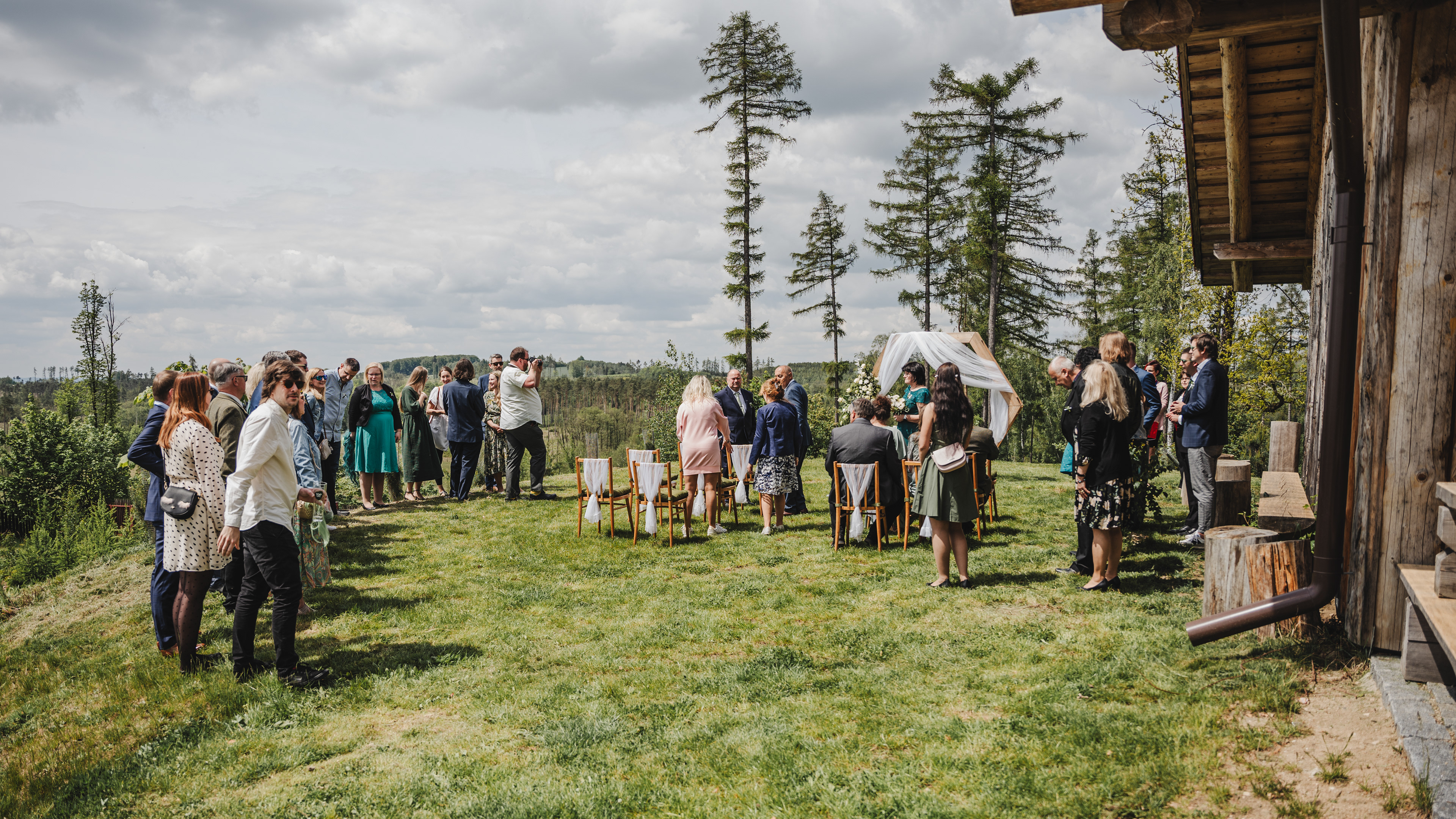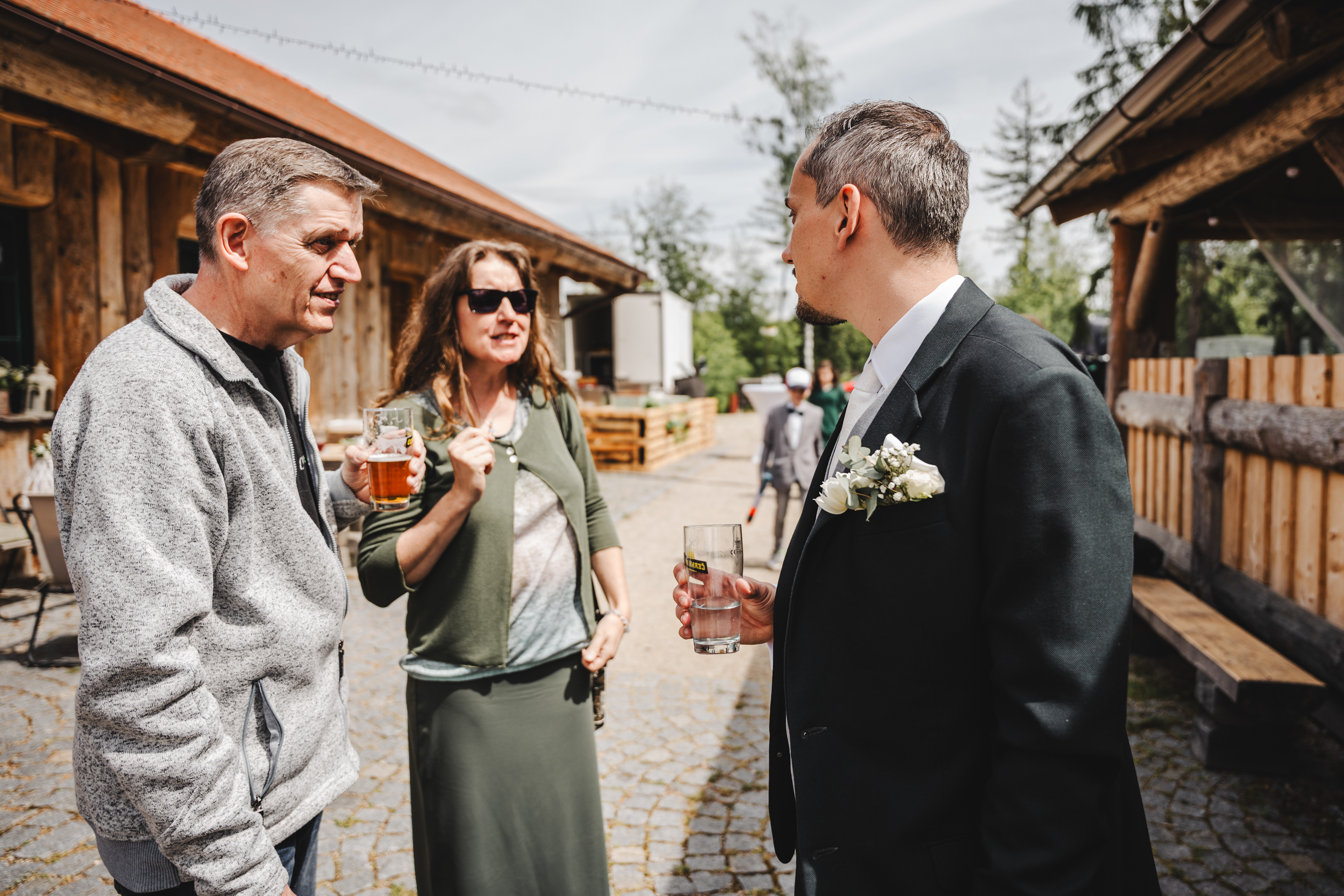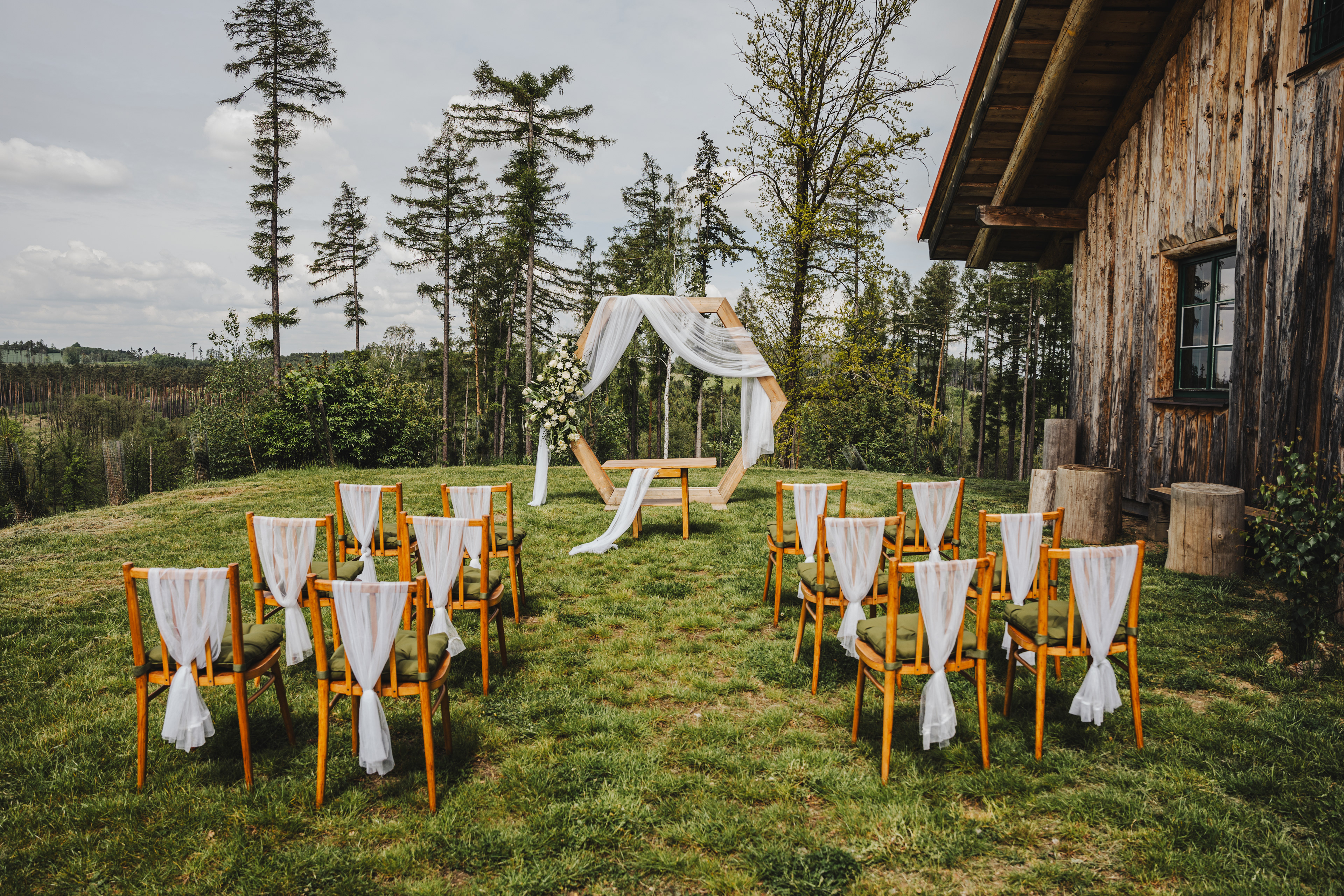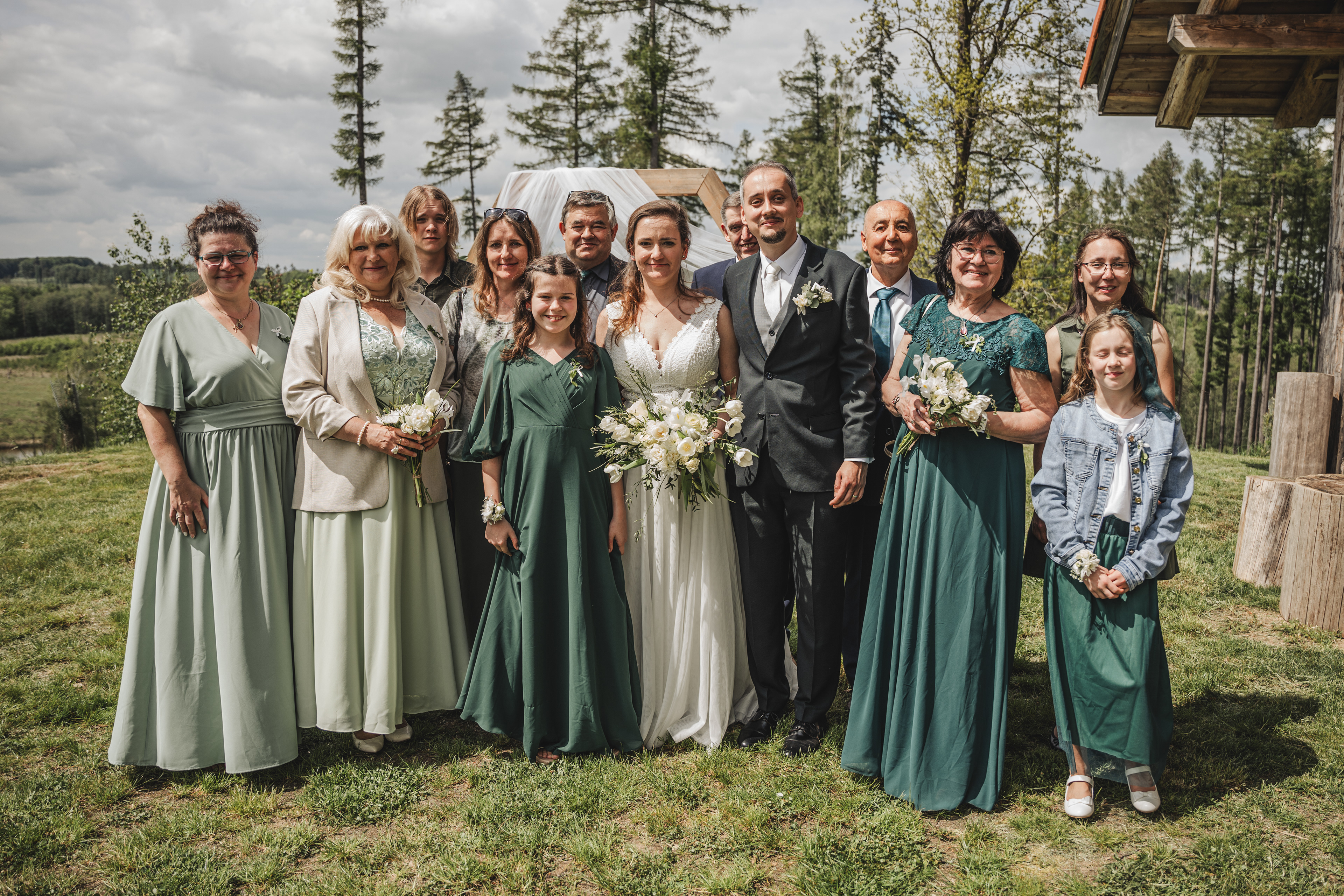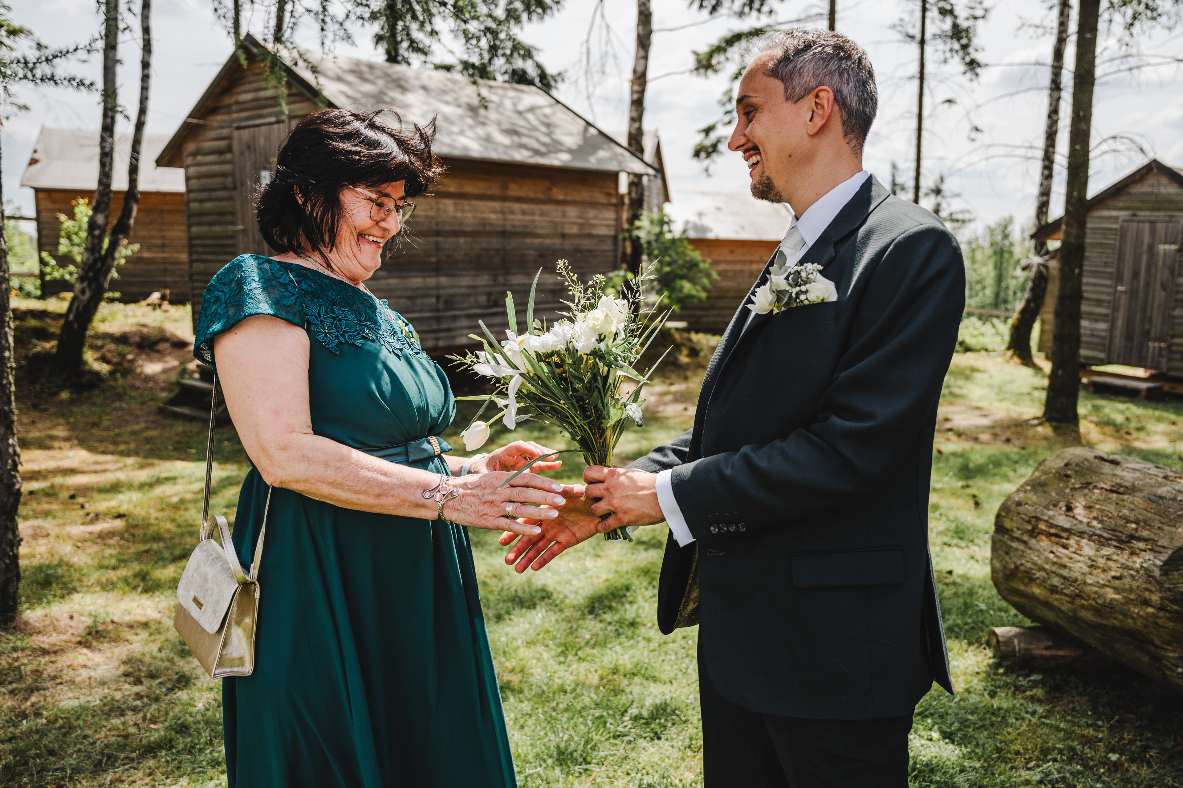 Svatba Lucie a Milana pro mě znamenala příjemnou změnu rytmu. Z ruchu pražských svateb jsem se tentokrát vydal mnohem dál, na dřevěný srub Ježkovec, ukrytý uprostřed přírody. Místo s klidem, vůní dřeva a atmosférou lesní rezidence, kde má člověk pocit, že se svět na chvíli zastavil. Bez ruchu města, bez spěchu, jen oni, jejich blízcí a čistá radost z přítomného okamžiku. Pro portréty jsme se přesunuli do Telče, kde jsme prošli malebné náměstí i okolí zámku a nechali se unést lehkostí společného focení. Vznikly snímky plné pohody, smíchu a přirozenosti.