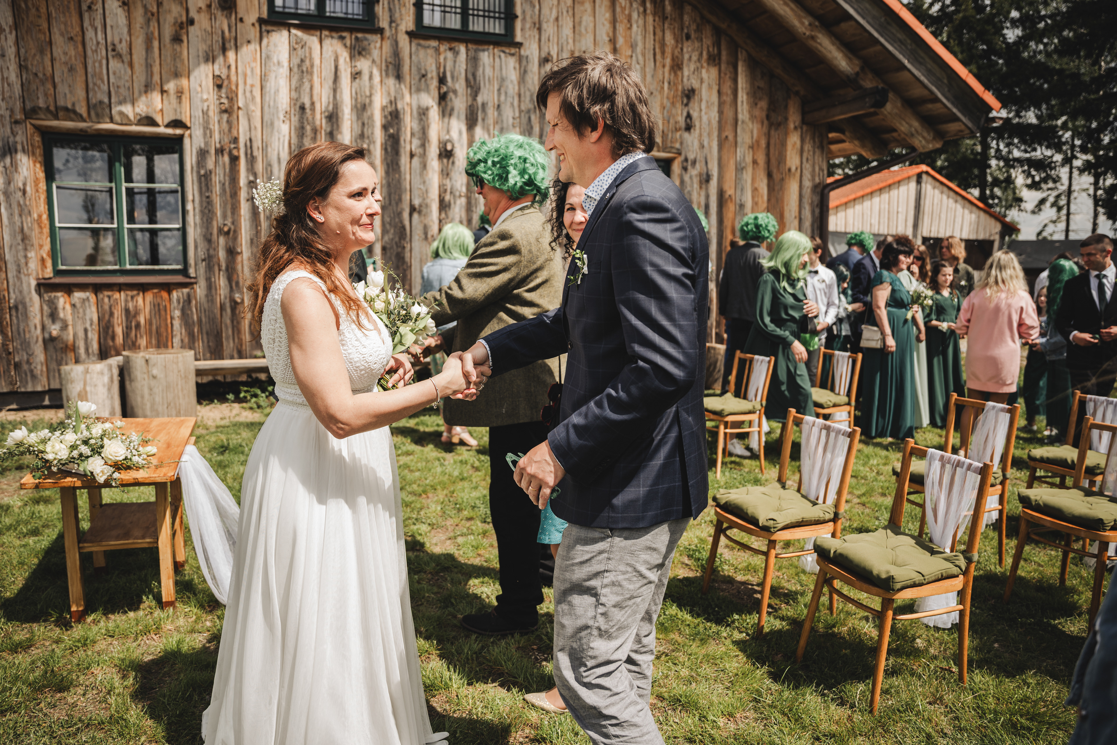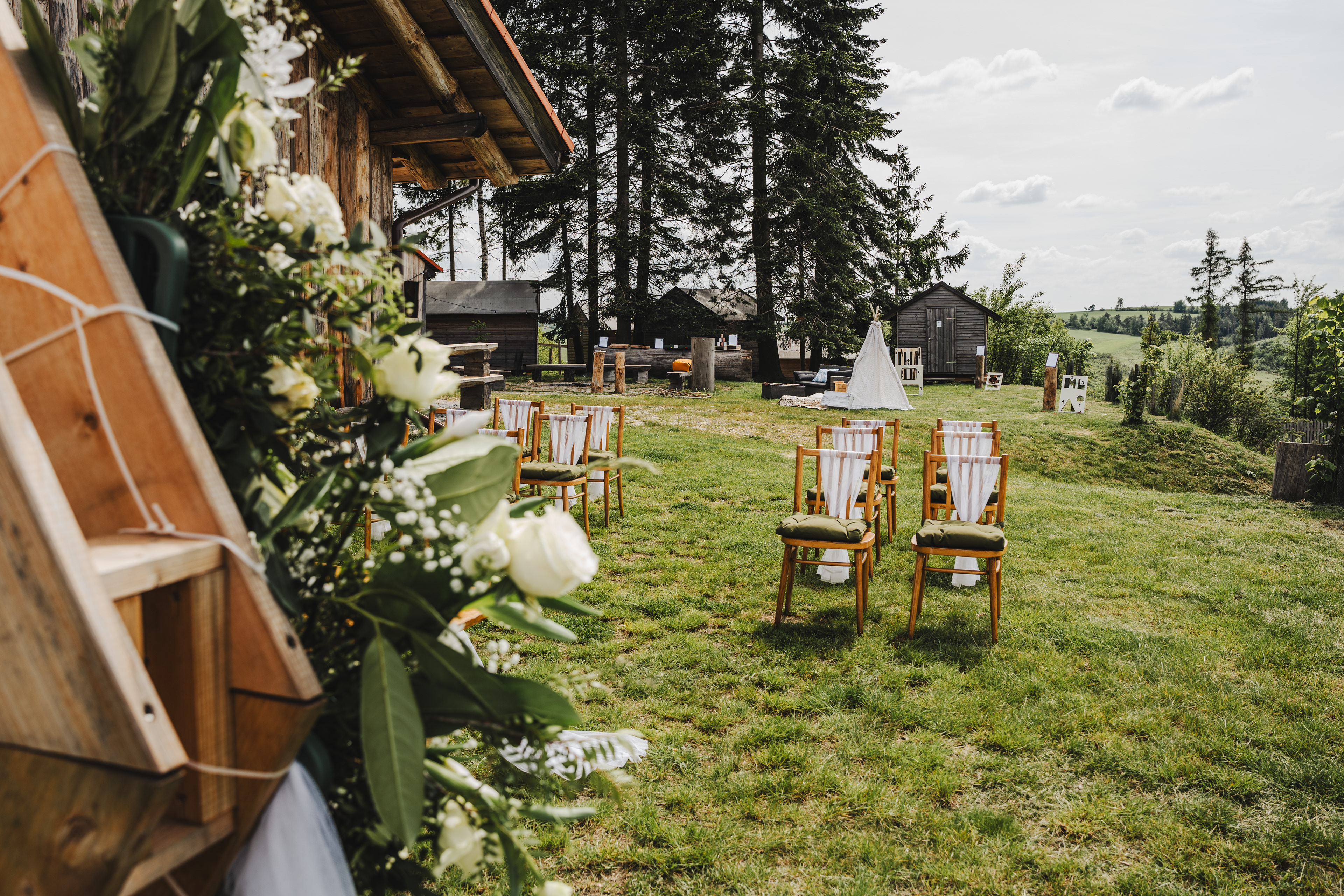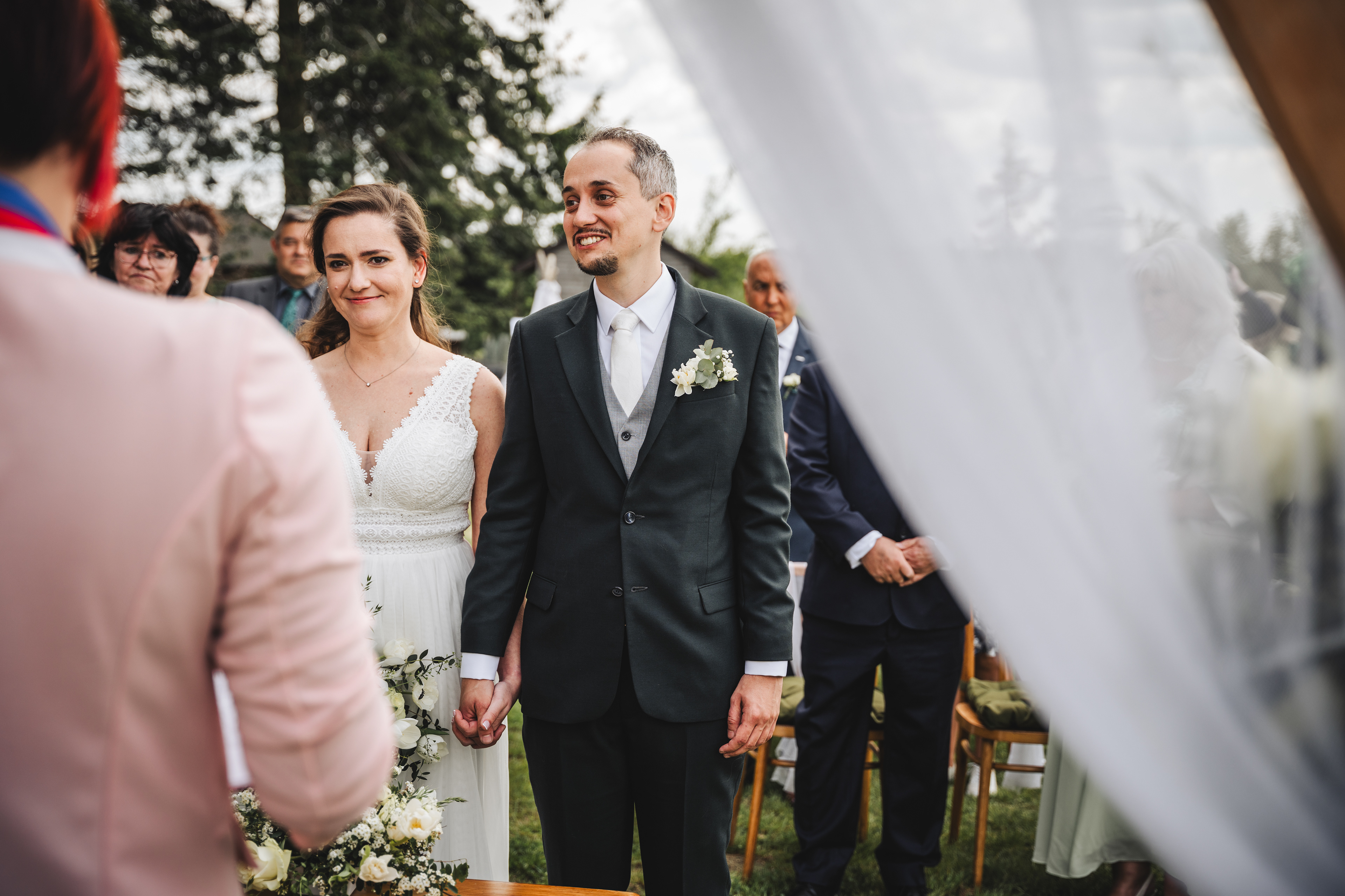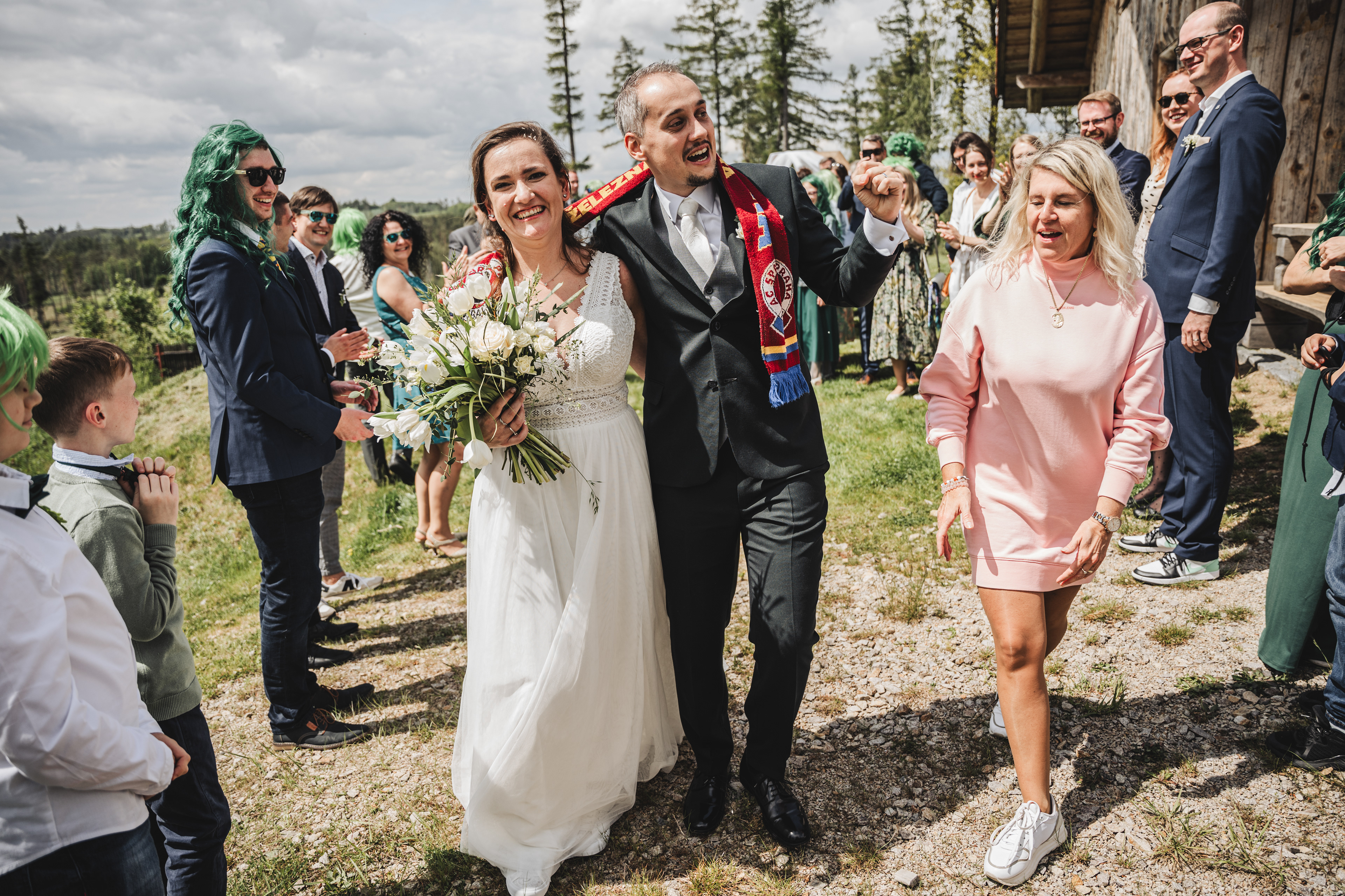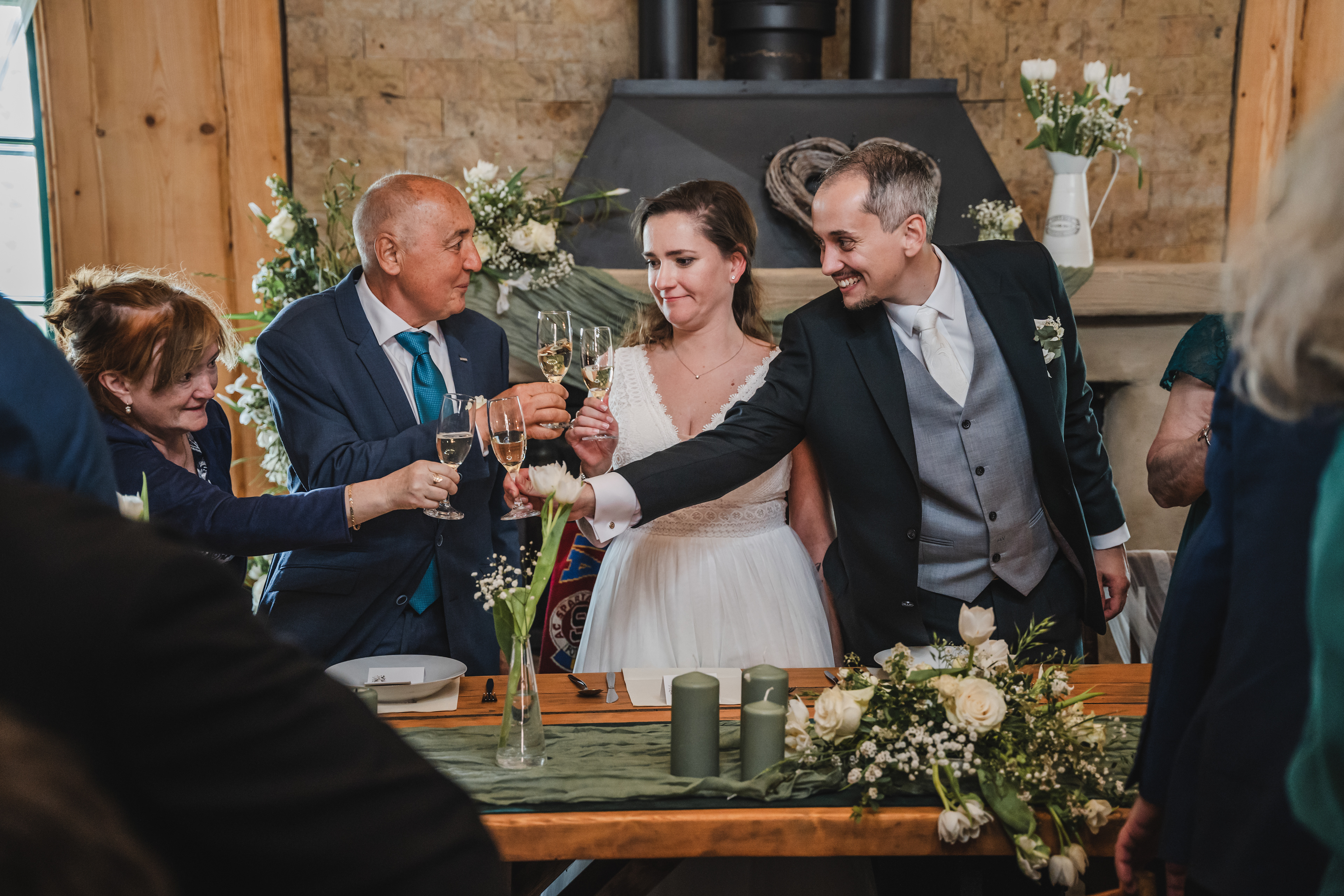 Svatba Lucie a Milana pro mě znamenala příjemnou změnu rytmu. Z ruchu pražských svateb jsem se tentokrát vydal mnohem dál, na dřevěný srub Ježkovec, ukrytý uprostřed přírody. Místo s klidem, vůní dřeva a atmosférou lesní rezidence, kde má člověk pocit, že se svět na chvíli zastavil. Bez ruchu města, bez spěchu, jen oni, jejich blízcí a čistá radost z přítomného okamžiku. Pro portréty jsme se přesunuli do Telče, kde jsme prošli malebné náměstí i okolí zámku a nechali se unést lehkostí společného focení. Vznikly snímky plné pohody, smíchu a přirozenosti.