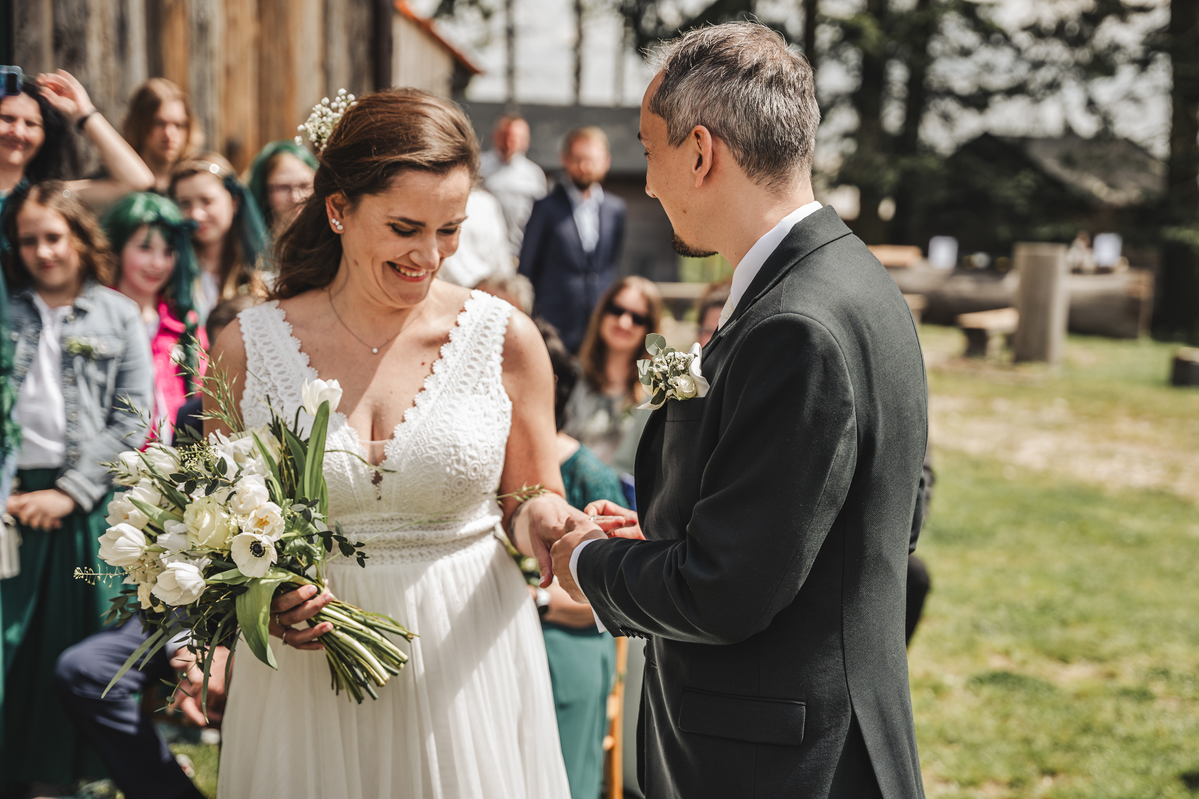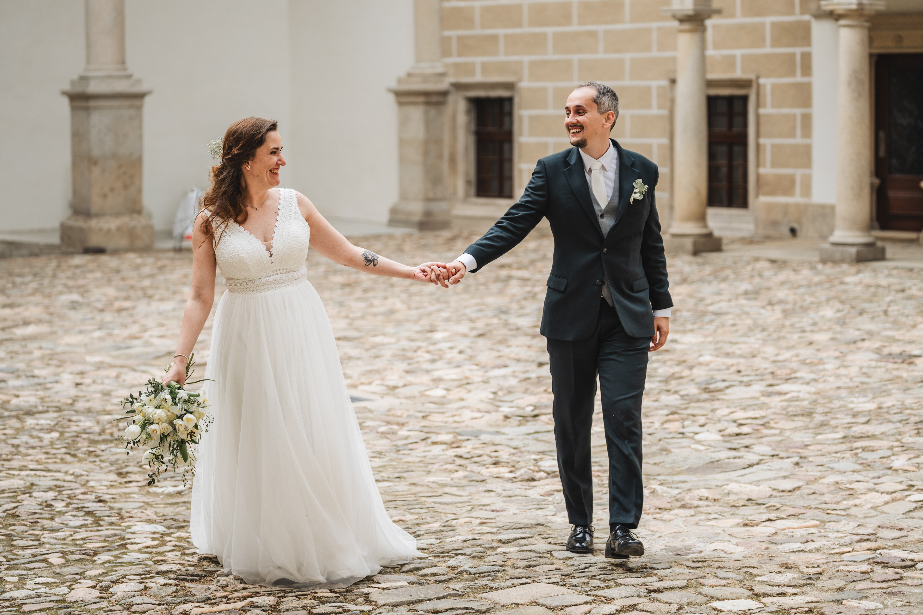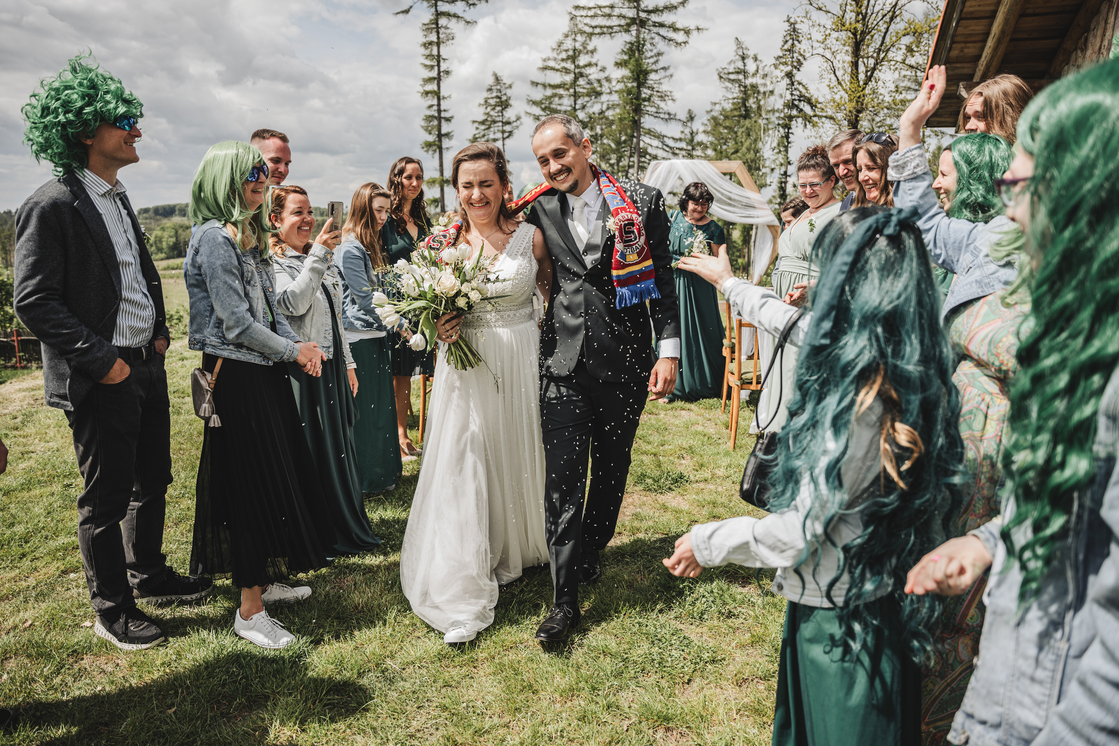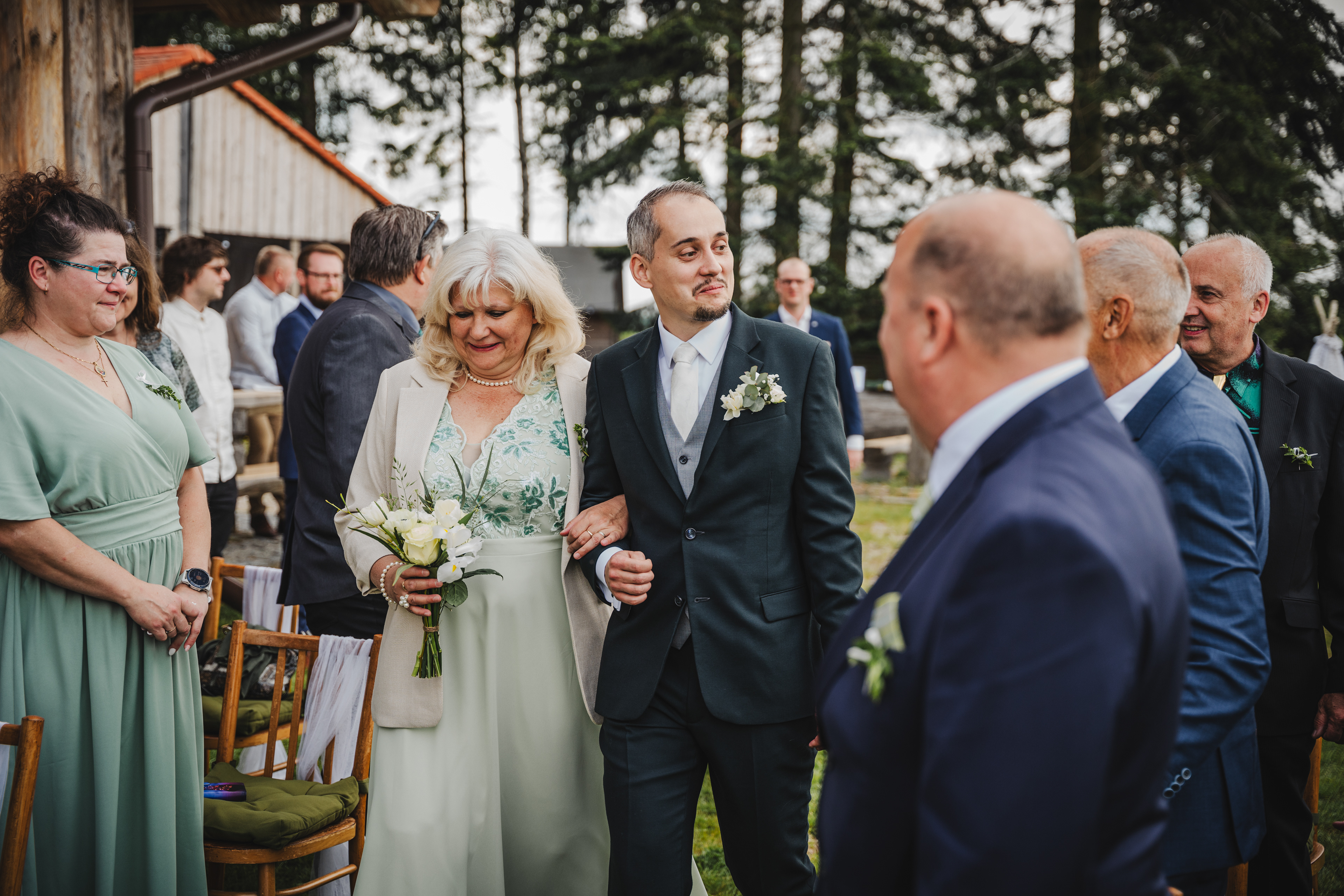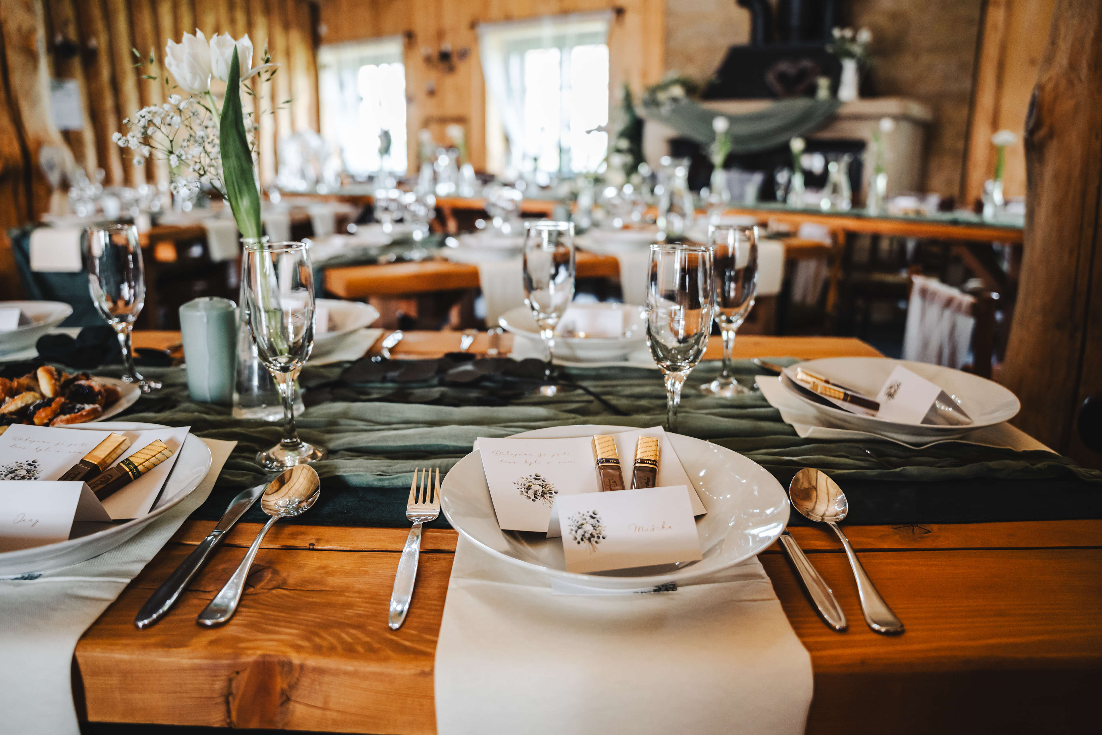 Svatba Lucie a Milana pro mě znamenala příjemnou změnu rytmu. Z ruchu pražských svateb jsem se tentokrát vydal mnohem dál, na dřevěný srub Ježkovec, ukrytý uprostřed přírody. Místo s klidem, vůní dřeva a atmosférou lesní rezidence, kde má člověk pocit, že se svět na chvíli zastavil. Bez ruchu města, bez spěchu, jen oni, jejich blízcí a čistá radost z přítomného okamžiku. Pro portréty jsme se přesunuli do Telče, kde jsme prošli malebné náměstí i okolí zámku a nechali se unést lehkostí společného focení. Vznikly snímky plné pohody, smíchu a přirozenosti.