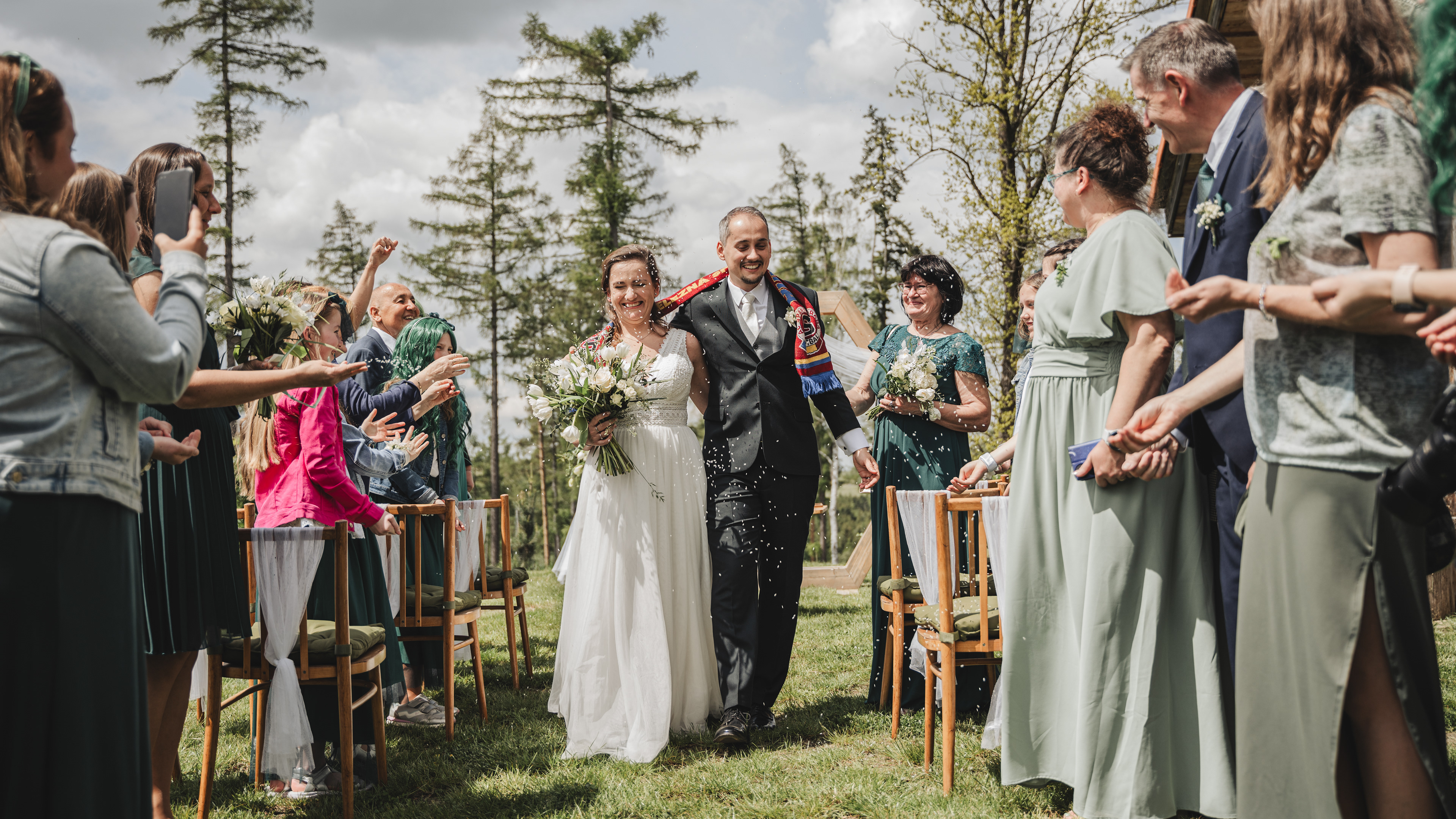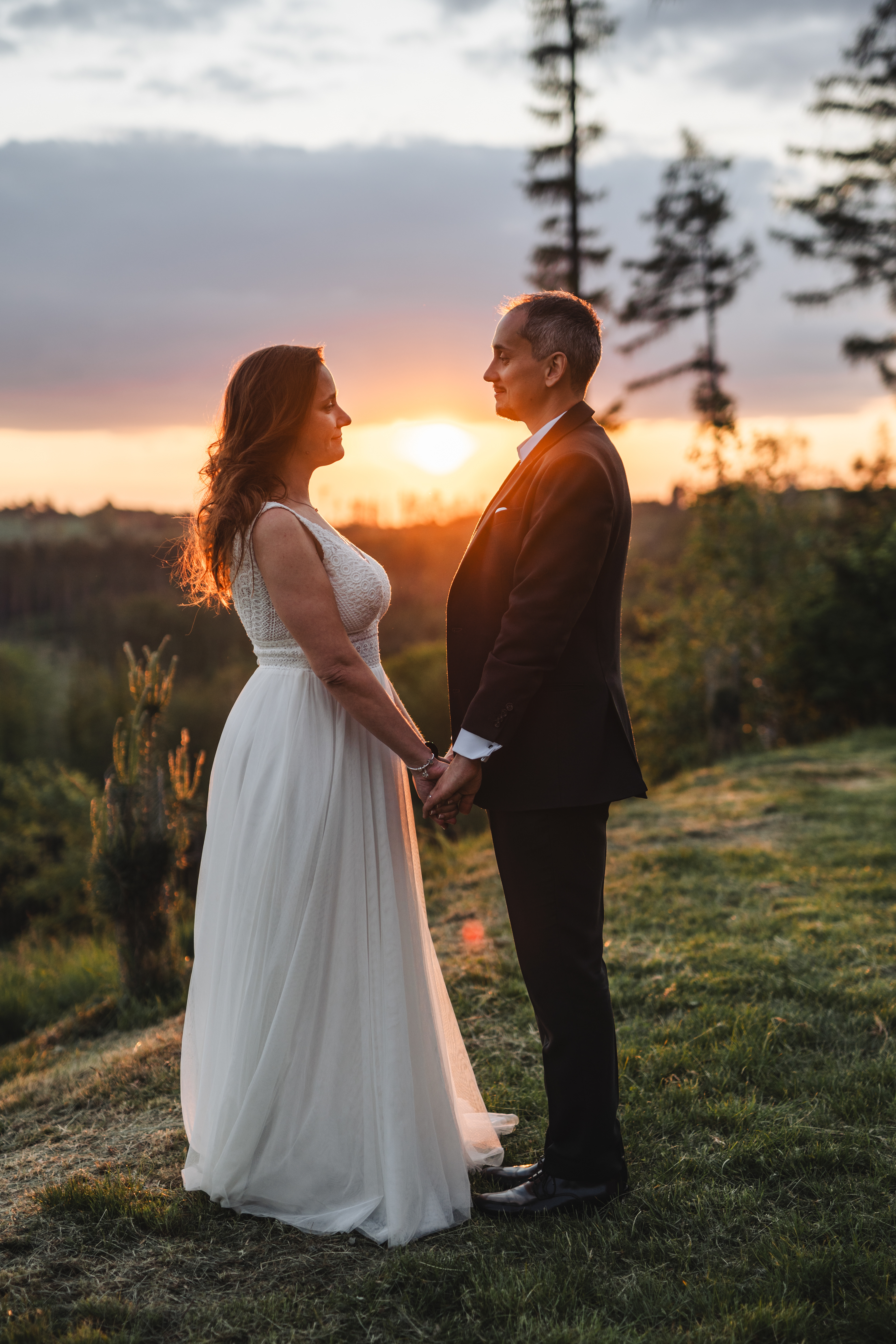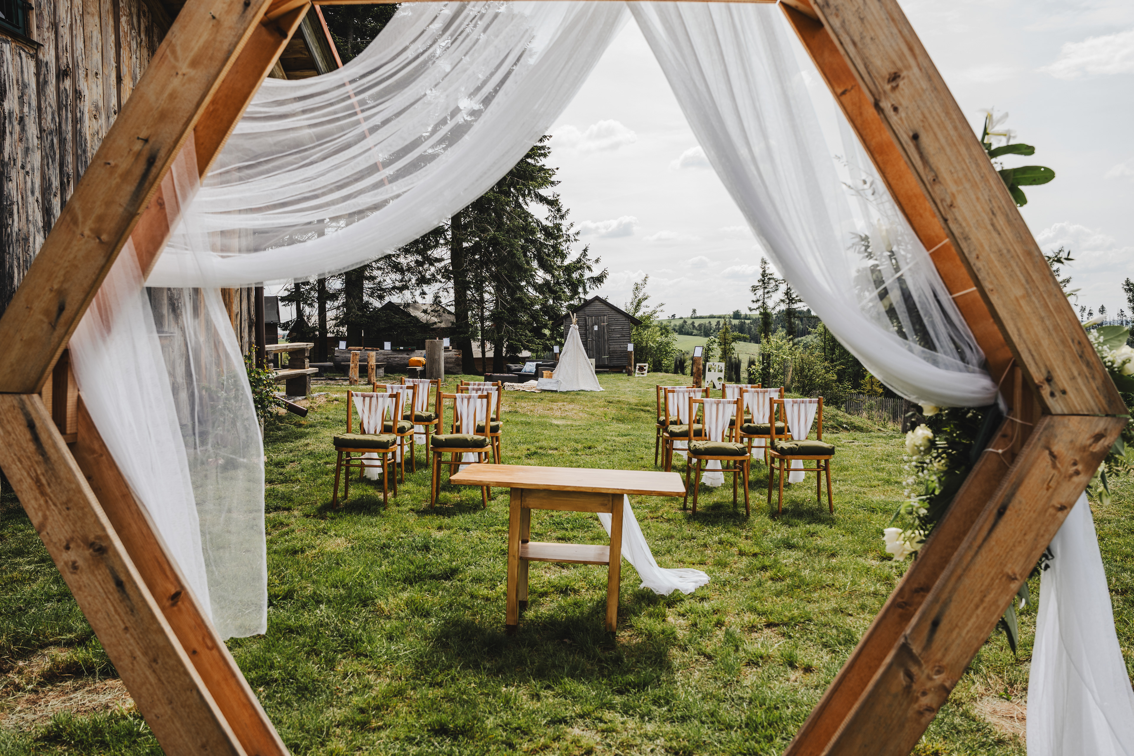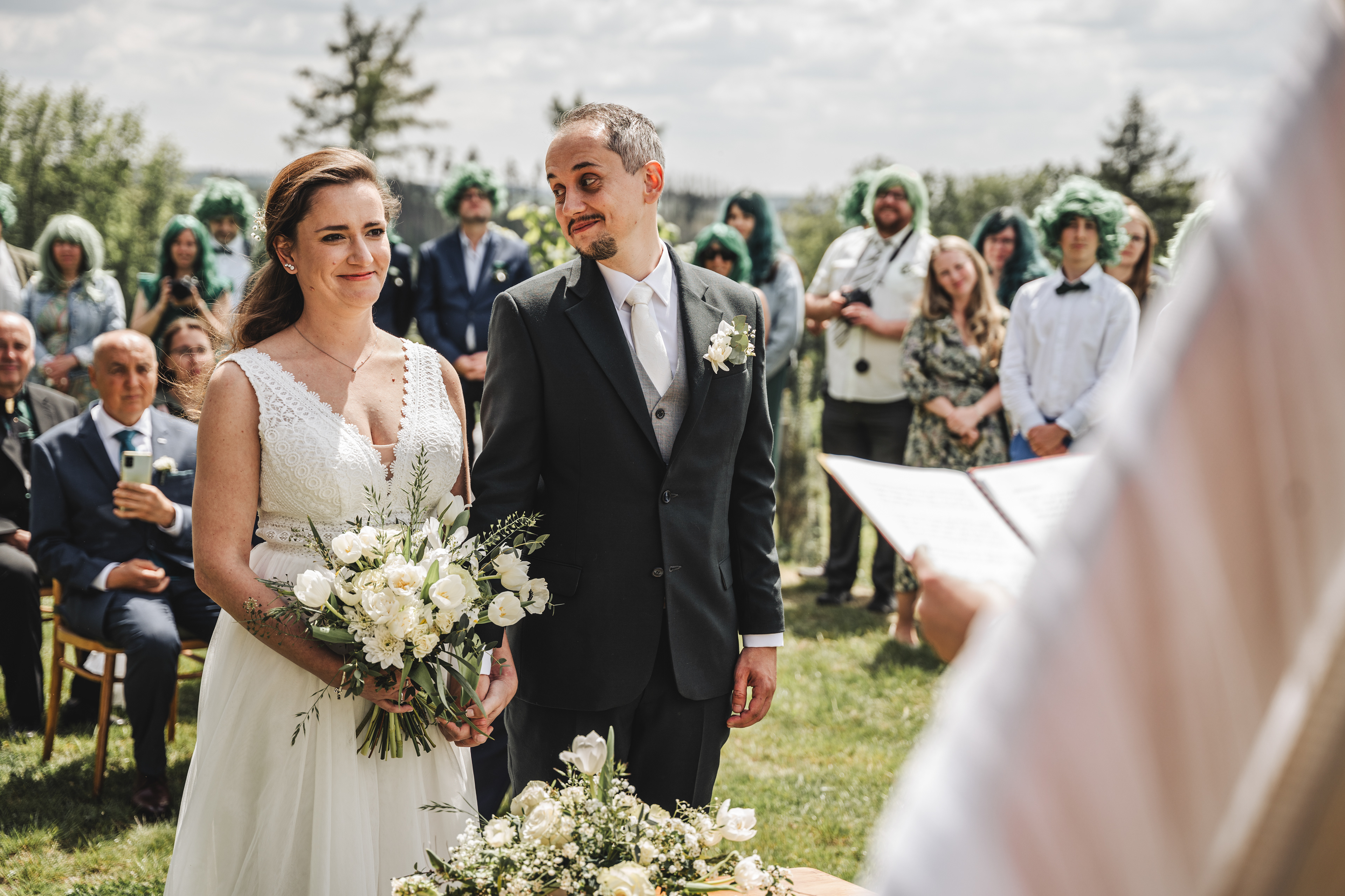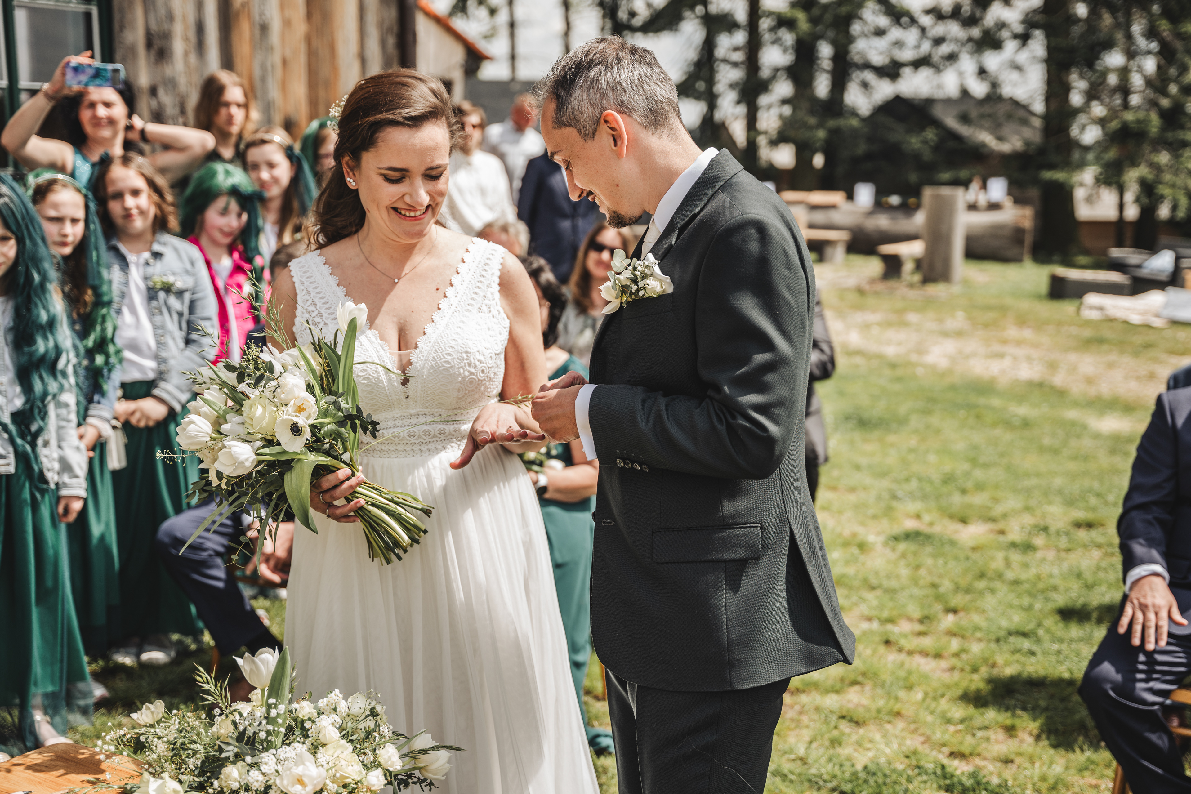 Svatba Lucie a Milana pro mě znamenala příjemnou změnu rytmu. Z ruchu pražských svateb jsem se tentokrát vydal mnohem dál, na dřevěný srub Ježkovec, ukrytý uprostřed přírody. Místo s klidem, vůní dřeva a atmosférou lesní rezidence, kde má člověk pocit, že se svět na chvíli zastavil. Bez ruchu města, bez spěchu, jen oni, jejich blízcí a čistá radost z přítomného okamžiku. Pro portréty jsme se přesunuli do Telče, kde jsme prošli malebné náměstí i okolí zámku a nechali se unést lehkostí společného focení. Vznikly snímky plné pohody, smíchu a přirozenosti.