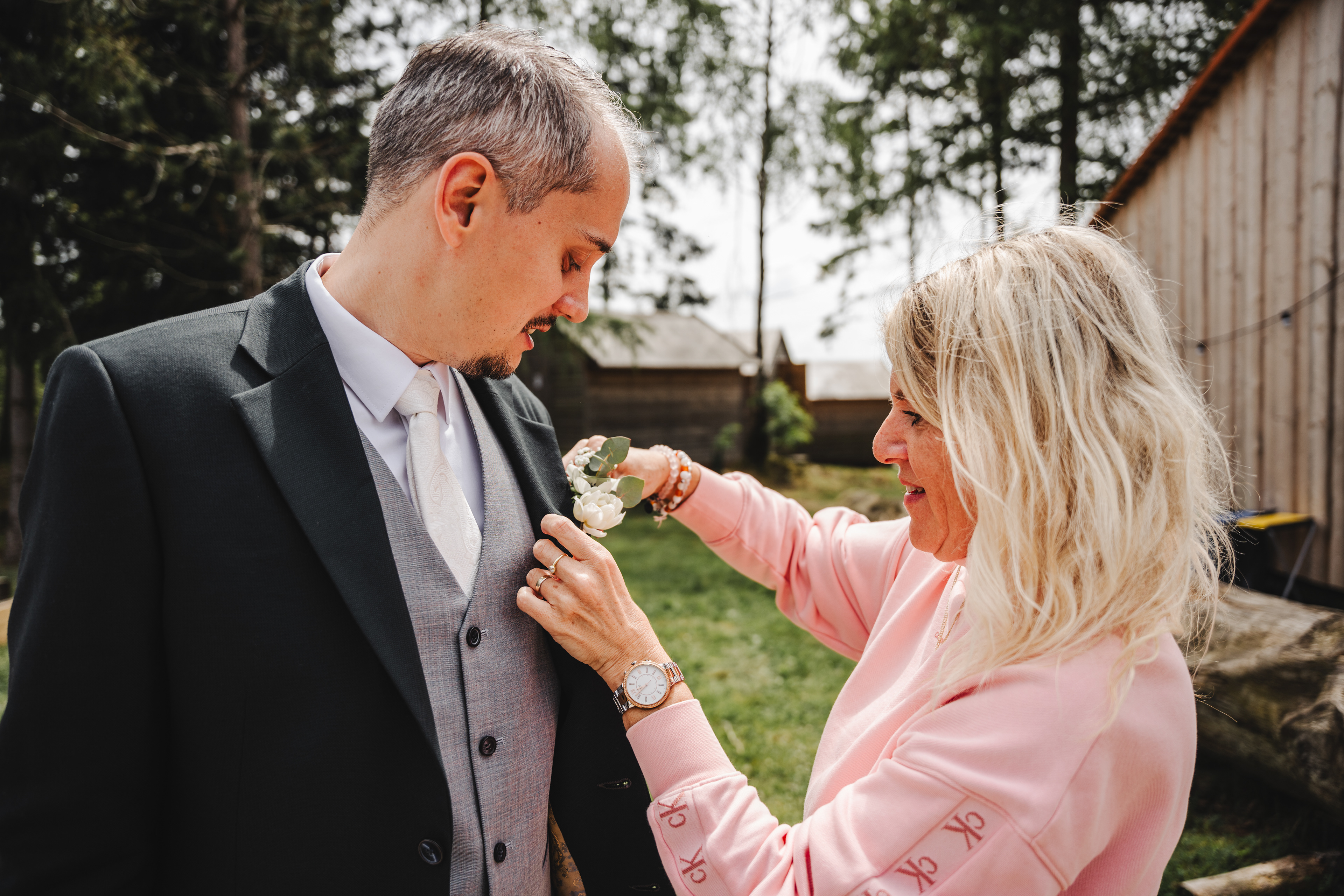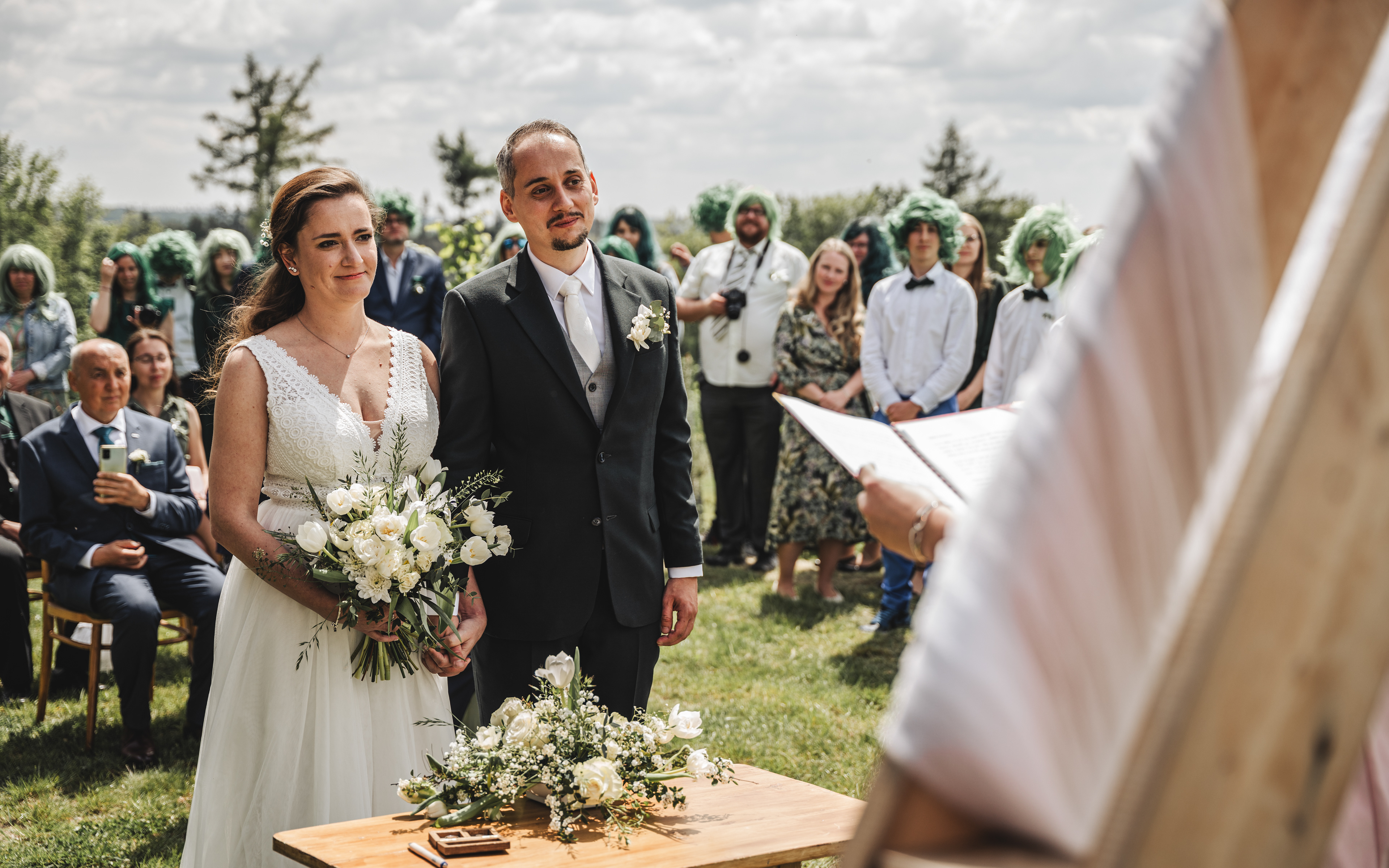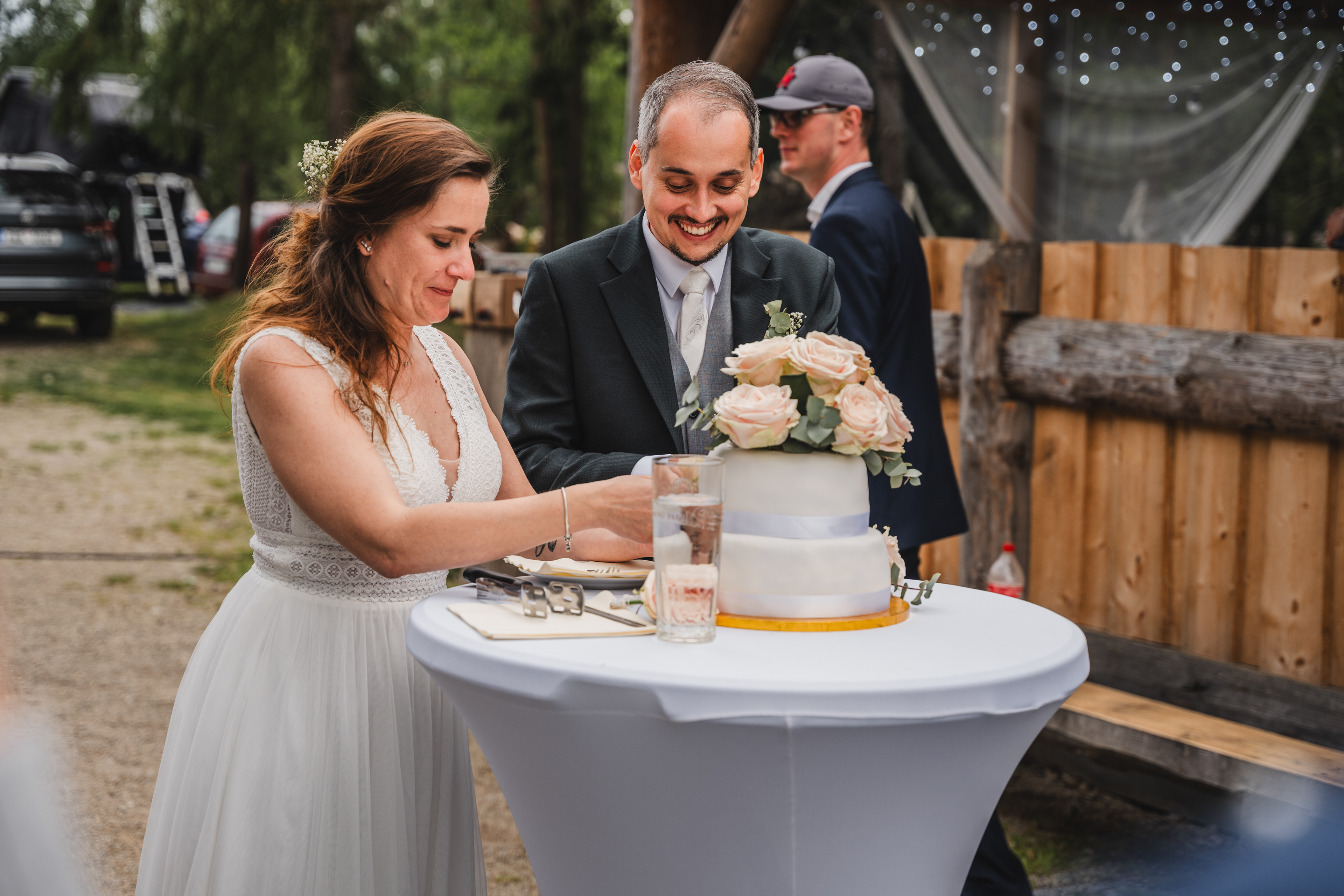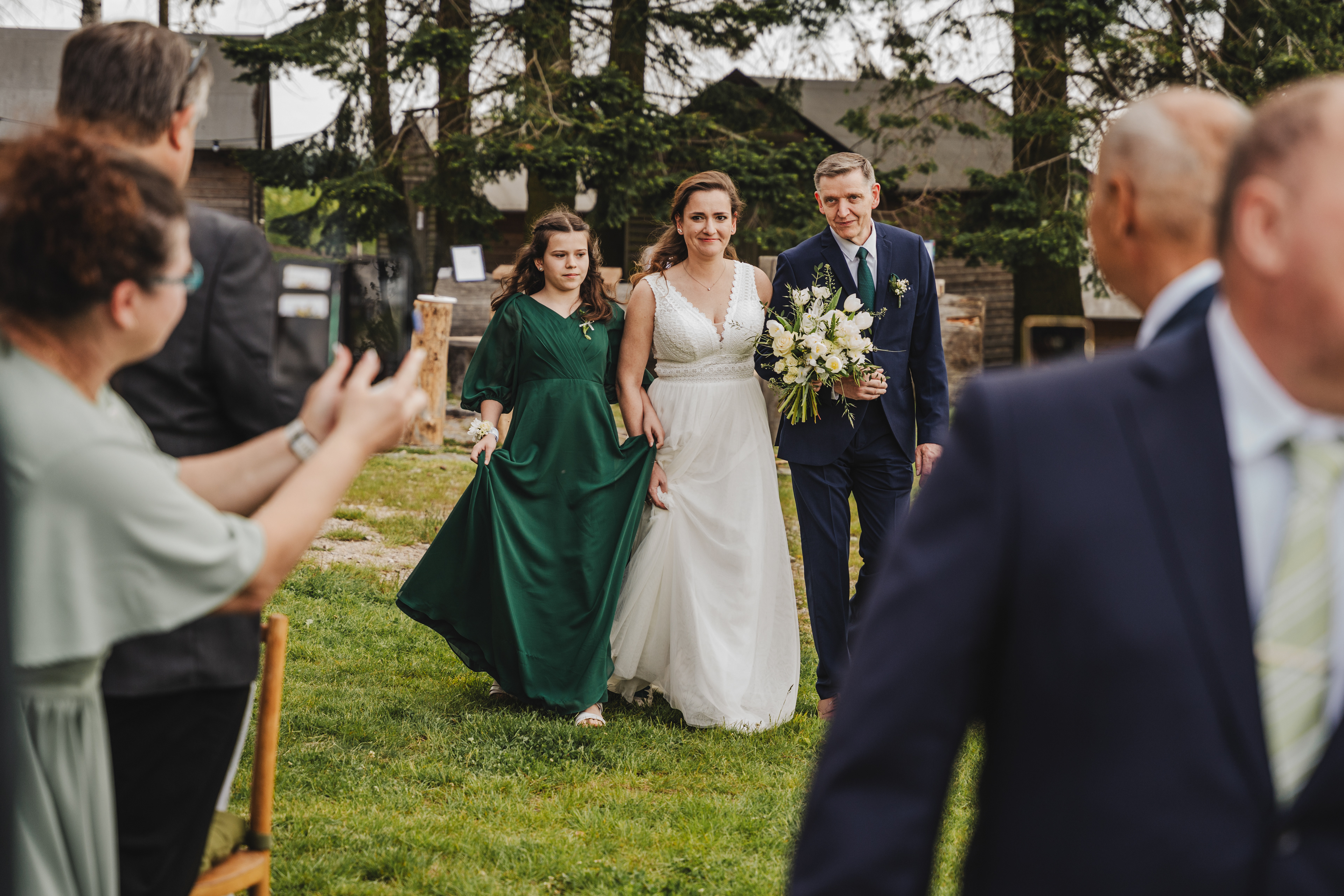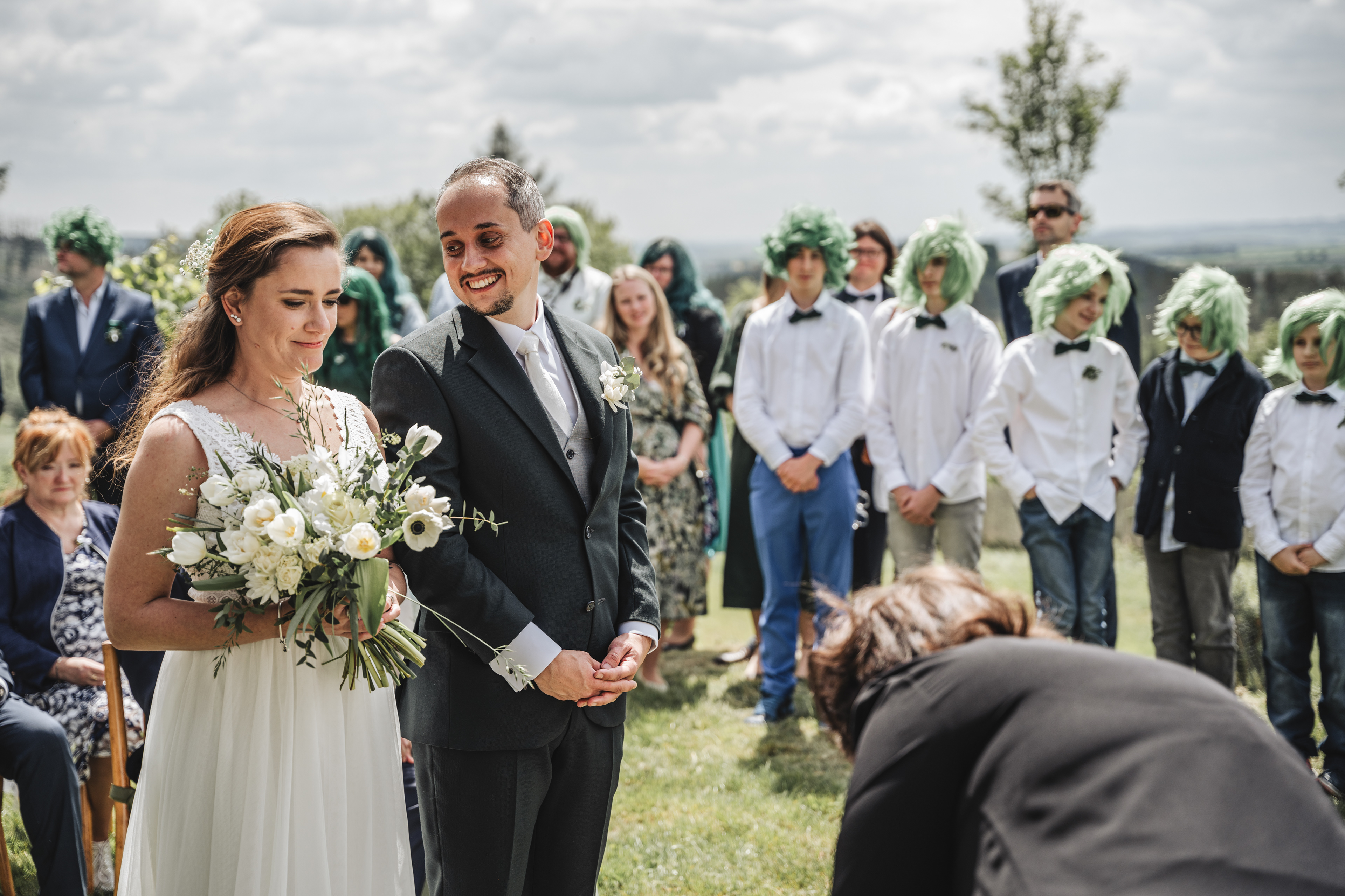 Svatba Lucie a Milana pro mě znamenala příjemnou změnu rytmu. Z ruchu pražských svateb jsem se tentokrát vydal mnohem dál, na dřevěný srub Ježkovec, ukrytý uprostřed přírody. Místo s klidem, vůní dřeva a atmosférou lesní rezidence, kde má člověk pocit, že se svět na chvíli zastavil. Bez ruchu města, bez spěchu, jen oni, jejich blízcí a čistá radost z přítomného okamžiku. Pro portréty jsme se přesunuli do Telče, kde jsme prošli malebné náměstí i okolí zámku a nechali se unést lehkostí společného focení. Vznikly snímky plné pohody, smíchu a přirozenosti.